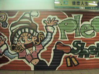 台北の地下街の書くブースのシャッターにかかれた絵。 10時から11時ごろオープンなので朝の散歩がてらに見て歩けます。